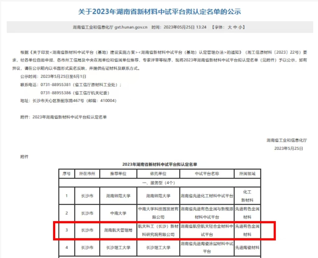 航天科工(长沙)新材料研究院有限公司成立于2015 年12月,是由中国航天科工集团公司与湖南省政府联合推动,湖南航天有限责任公司和长沙市人民政府共同出资成立的集技术研发、成果转化、企业孵化等功能于一体的新材料产业研究院。重点打造结构功能材料、电子功能材料和储能及再生利用装备三大产业板块,在太空材料、材料基因工程、增材制造金属粉末材料、特种高分子材料、金刚石材料及装备、印刷电子材料等技术领域达到国内先进水平。