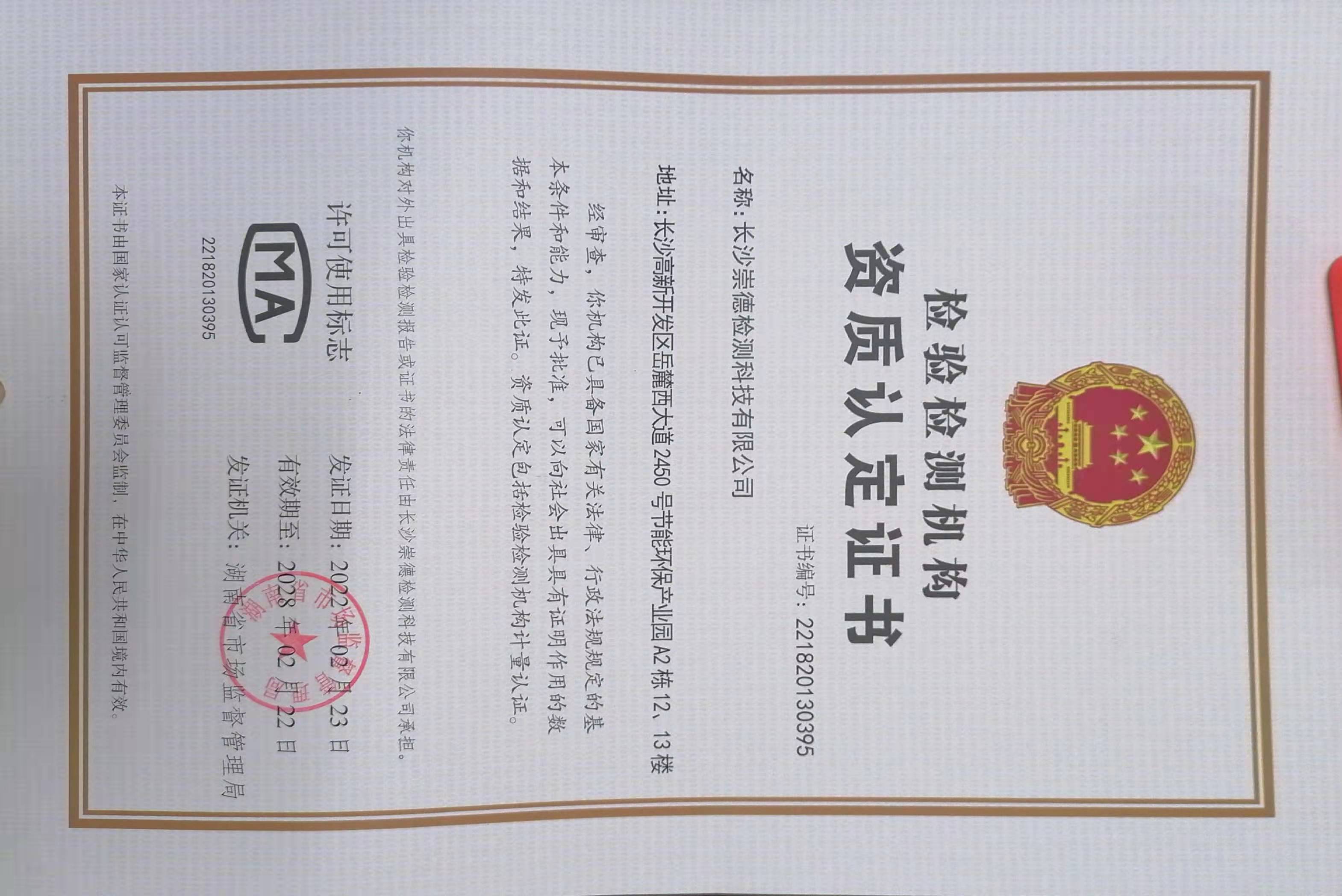崇德检测成立于2014年4月,是湖南金旅环保股份有限公司(简称“金旅环保”,新三板上市企业,证券代码833730)的控股子公司。公司建立了完善的内部管理制度和全过程质量控制体系,坚持“精准、求实、服务、创新”的质量方针,严格遵照国家有关检测检验方法标准规范,秉承“诚信至上、客观公正、服务周到、专业高效”的经营理念,竭诚为社会各界提供优质高效的服务。